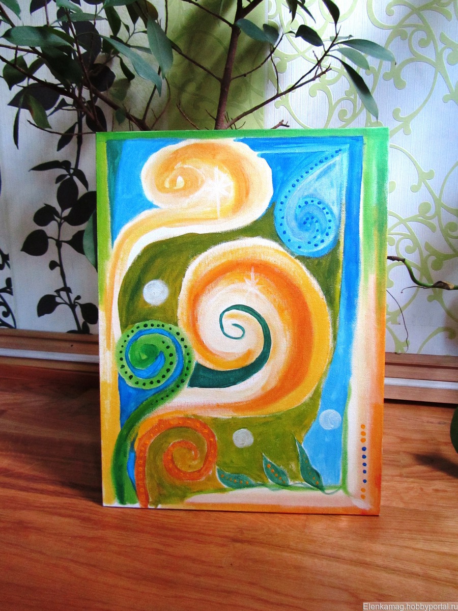 Энергетическая картина выполнена акриловыми красками. Не боится влаги и пыли, можно протирать влажной тряпочкой. Пока не обрамлена.