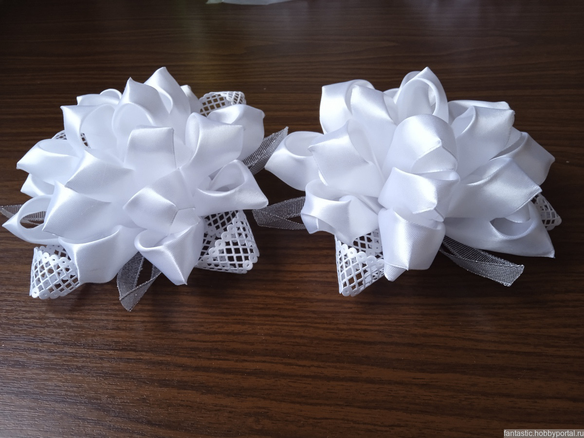 Бантики белые на выпускной, 1 сентября и т.д. Диаметр - 16-18см(в зависимости от модели). Цена за пару!!!