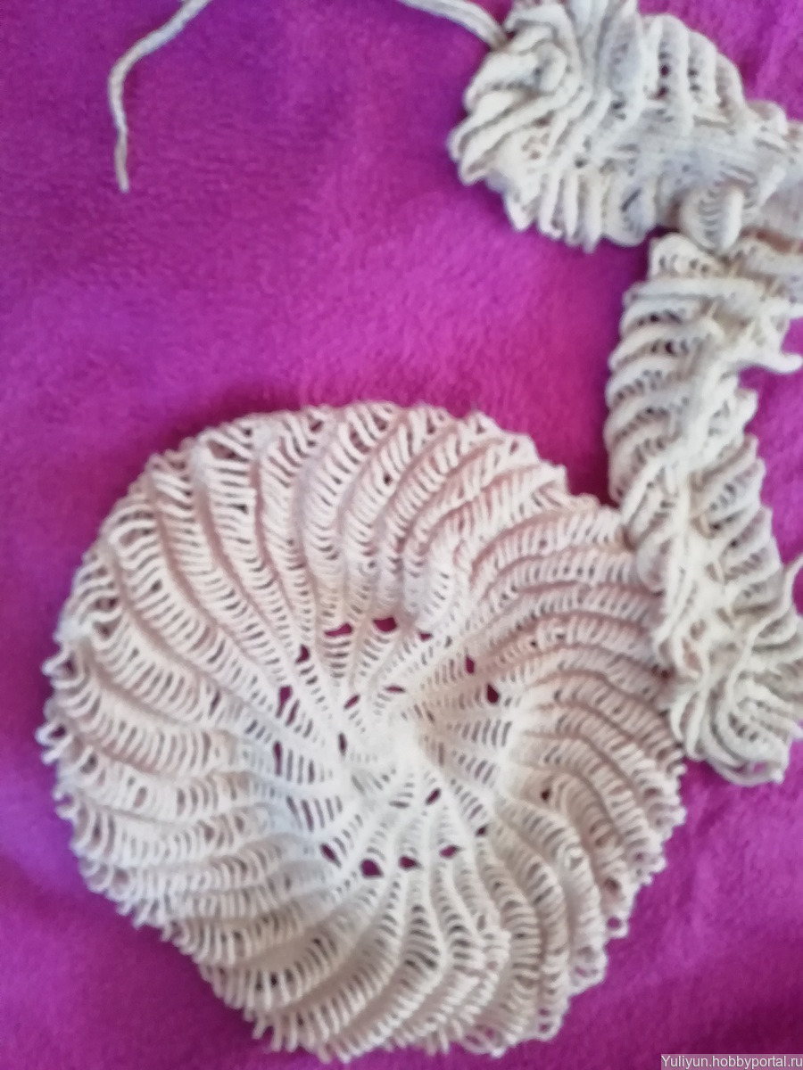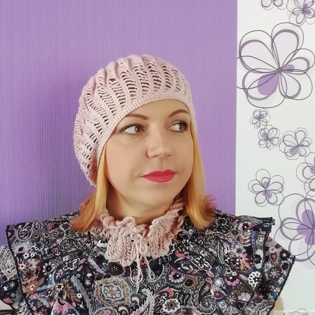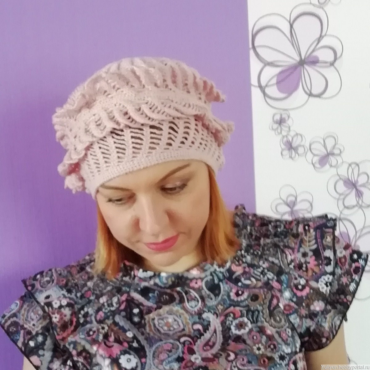 Ажурный комплект берет и шарфик, который можно преобразовать в берет с бантом, берет с ободком. Рисунок изделия меняется на изнаночной стороне и тоже красиво смотрится. Без шарфика 750р.