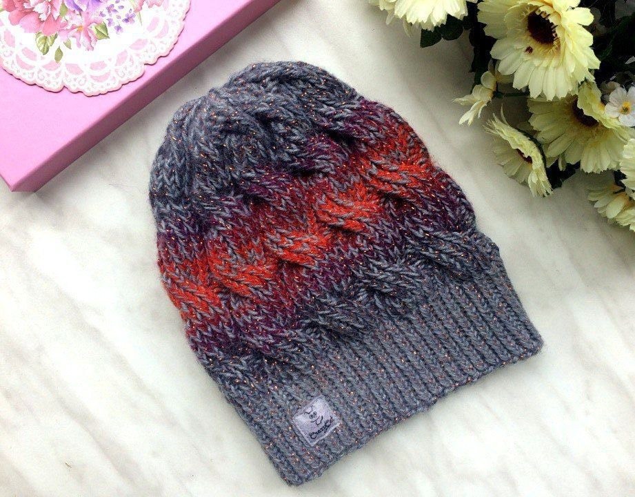 Шапка вязаная "Валенсия", шапочка вязаная, шапка с помпоном, женская вязаная шапка.