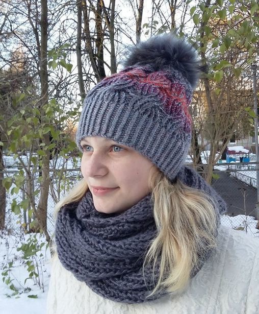 Шапочку можно дополнить помпоном из натурального меха (+400 рублей)