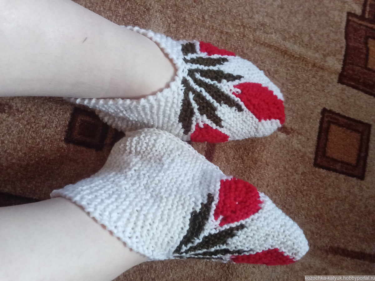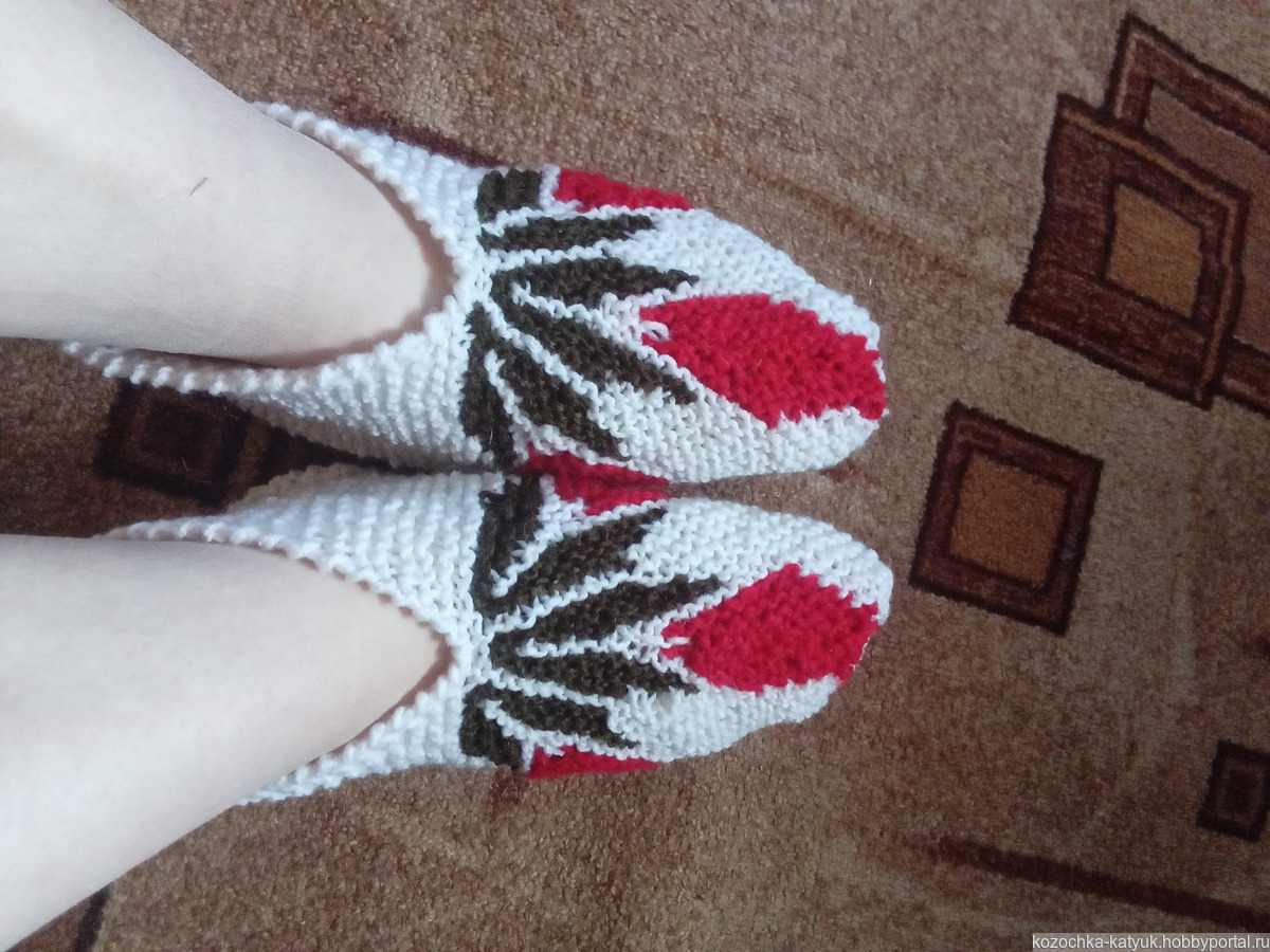 Уютные домашние тапочки-седочки из карачаевской шерсти. Сязаны спицами