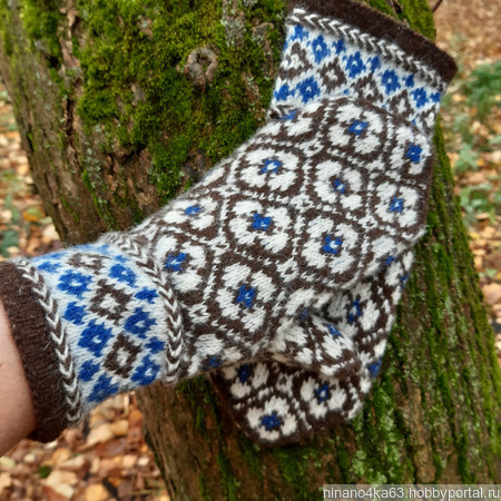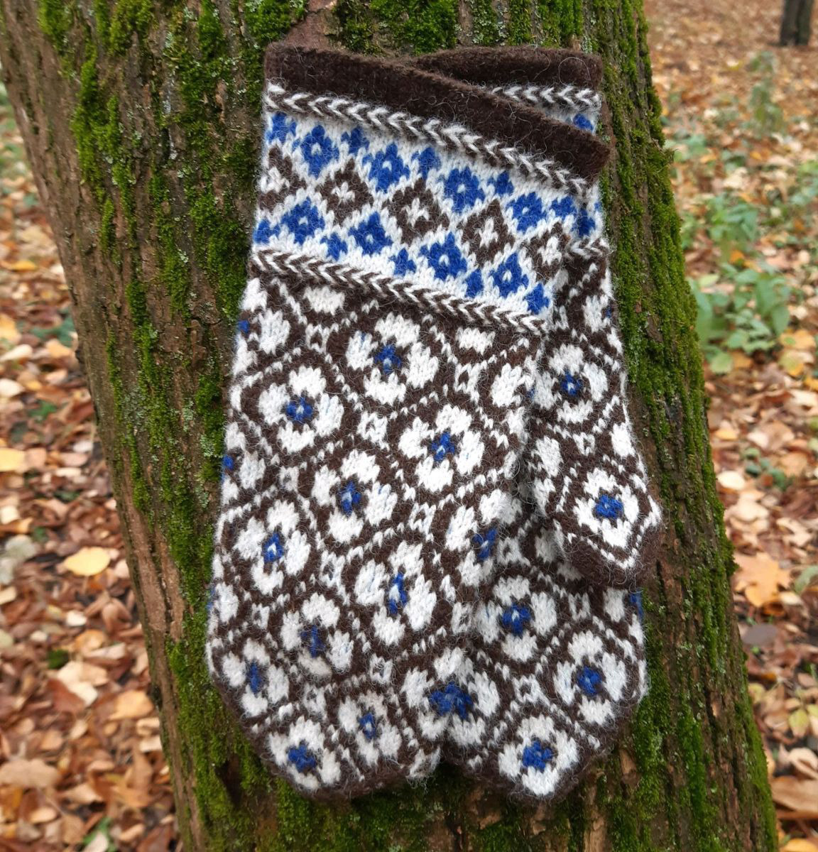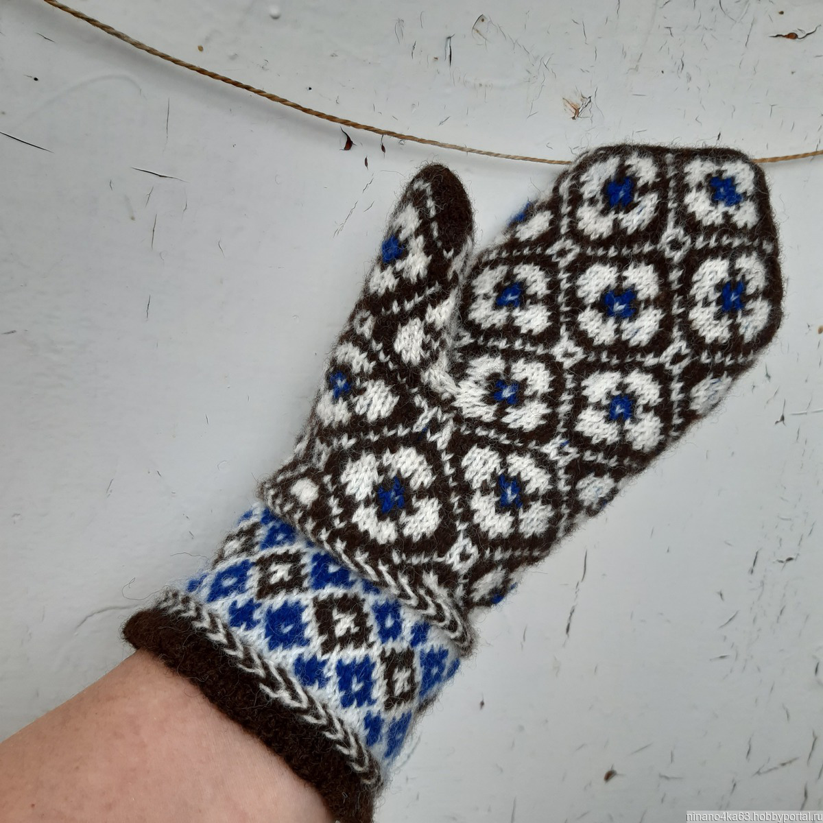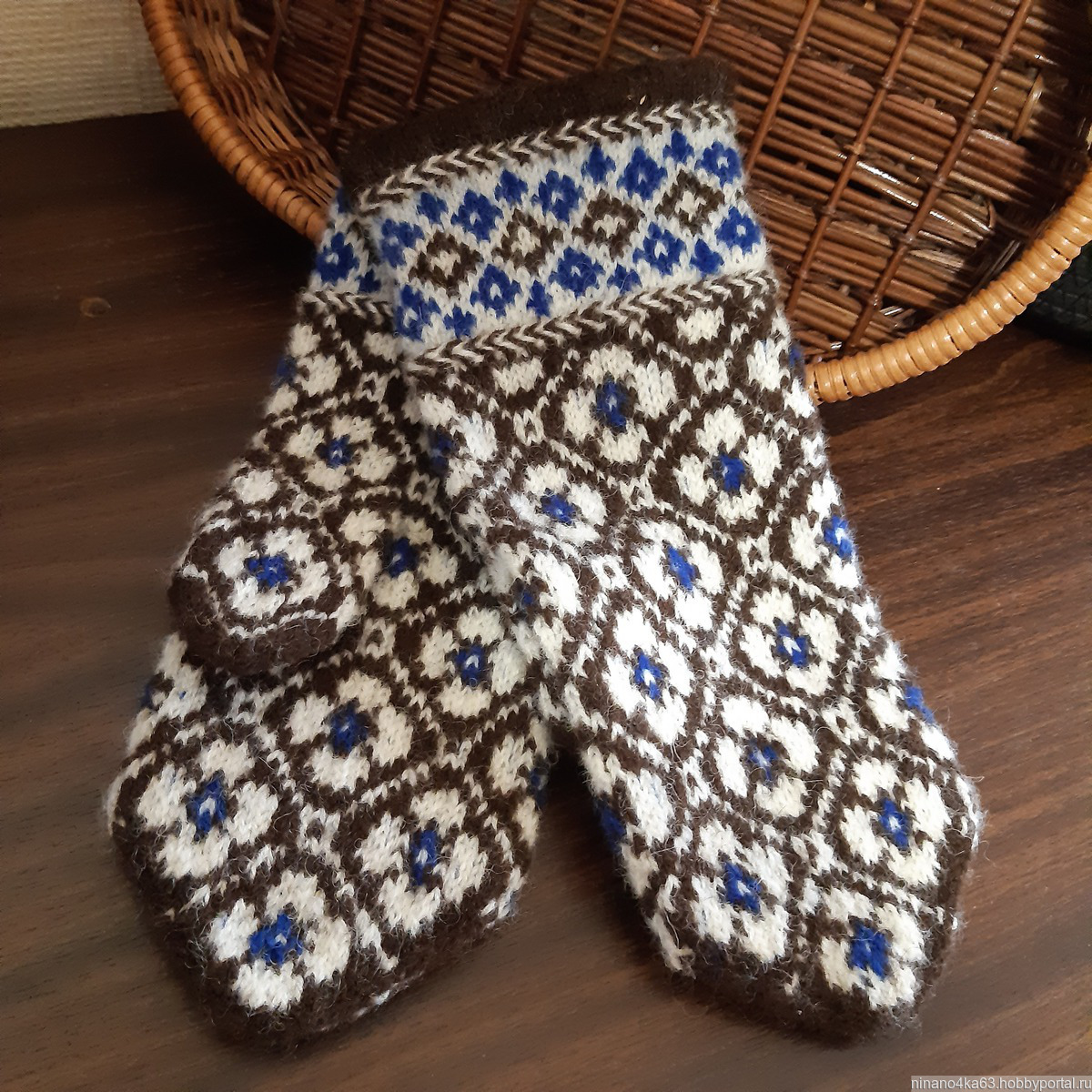 Очень тёплые варежки связаны спицами из 100% эстонской шерсти