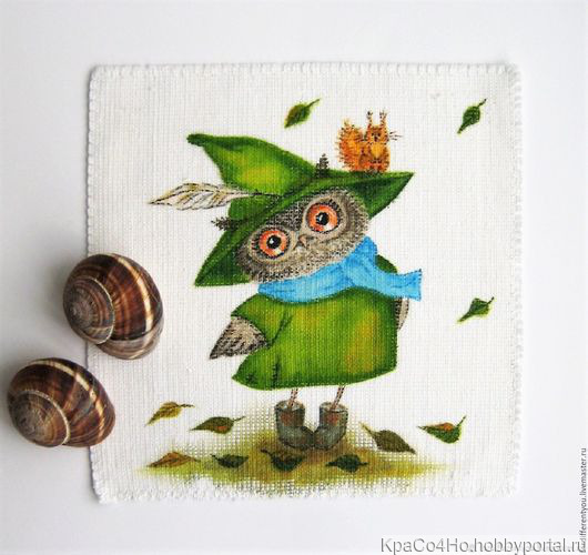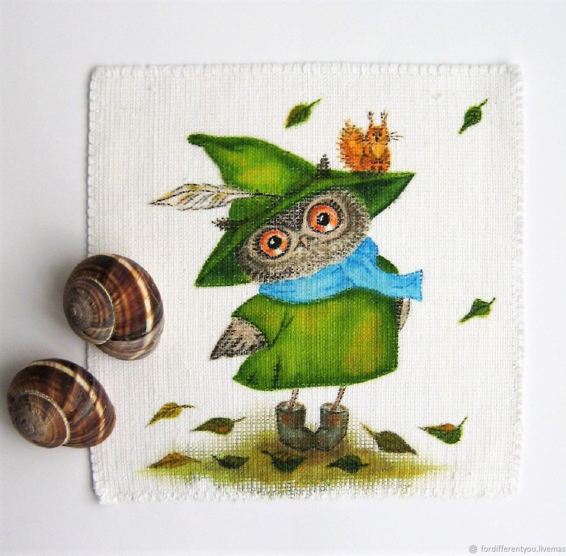 сова, совушка, енот, материалы для творчества, ежики, для блокнота, для обложки, для скрапбукинга, ткань для рукоделия, рисунок на ткани, футболка с росписью, для пэчворка, ткань для декорирования, текстильный купон, купон купить, купон с ручной росписью купить, купон лен, декорирование одежды, для сумочки, купон хлопок