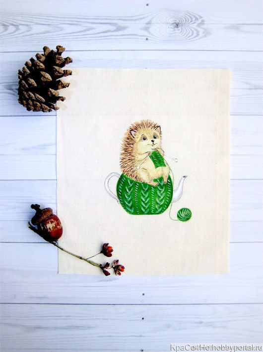 Рисунок выполнен вручную специальными акриловыми красками по ткани. Термическое закрепление рисунка повышает износостойкость краски и позволяет многократно стирать изделие.