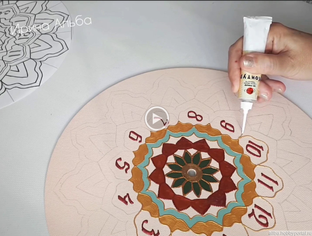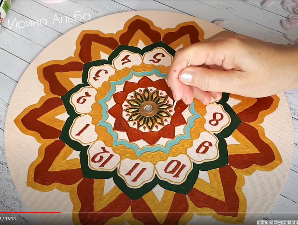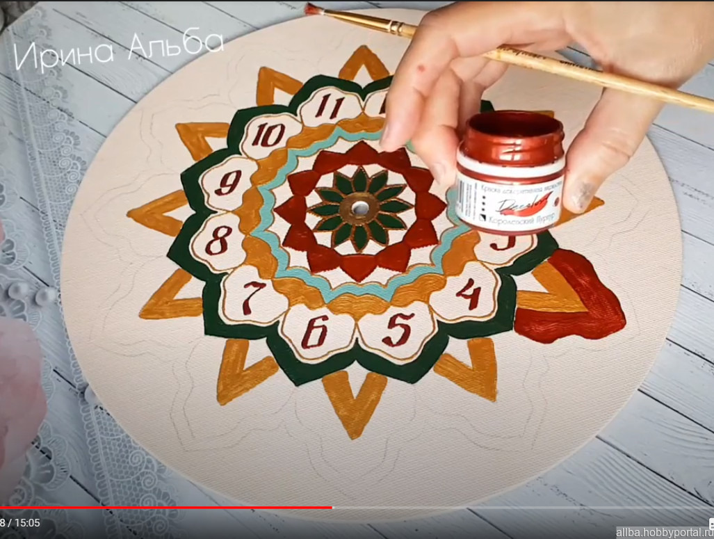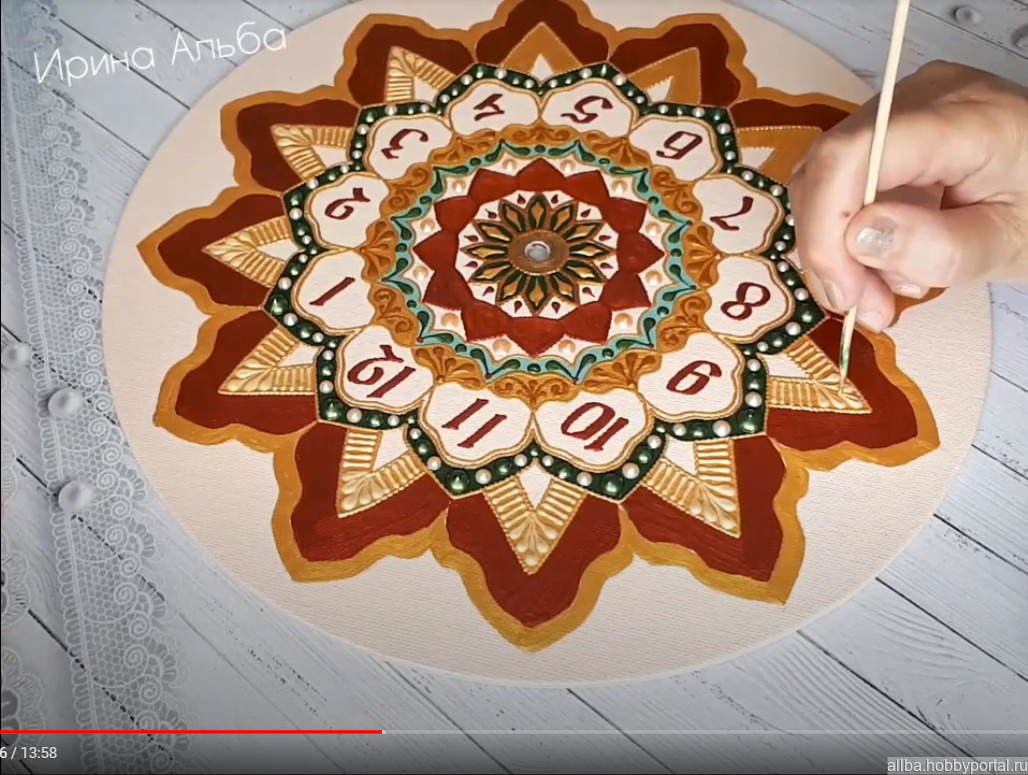 видео мастер-класс, ирина альба, часы настенные роспись, МК роспись часов, МК в формате mp4, как расписать часы, обучение точечной росписи