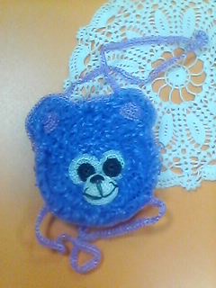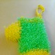 Детская мочалка ручной работы, связанная из полиэстра. С одной стороны смешное личико, а с другой стороны пушистая часть, без нашивок. Мочалка одевается, как перчатка на правую и на левую руку.