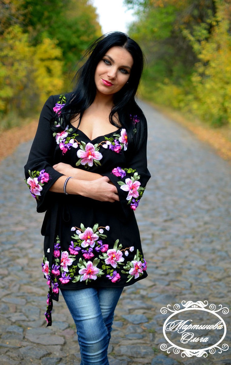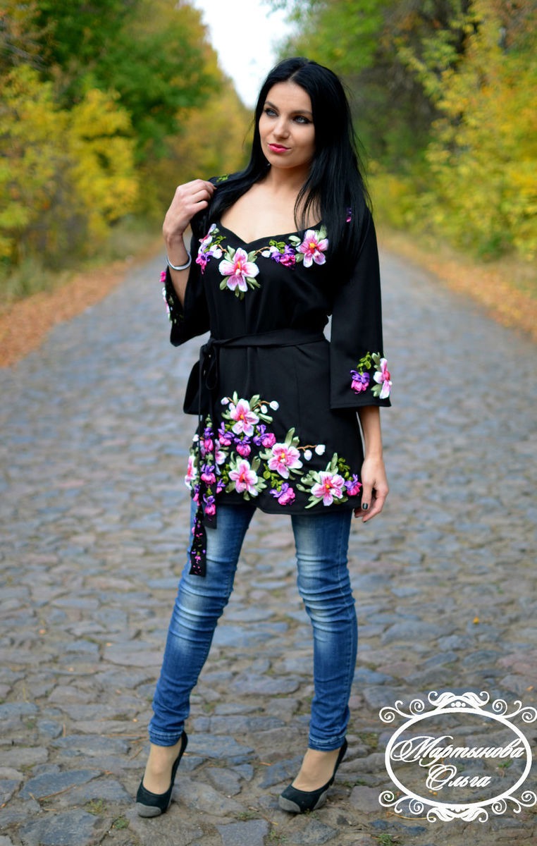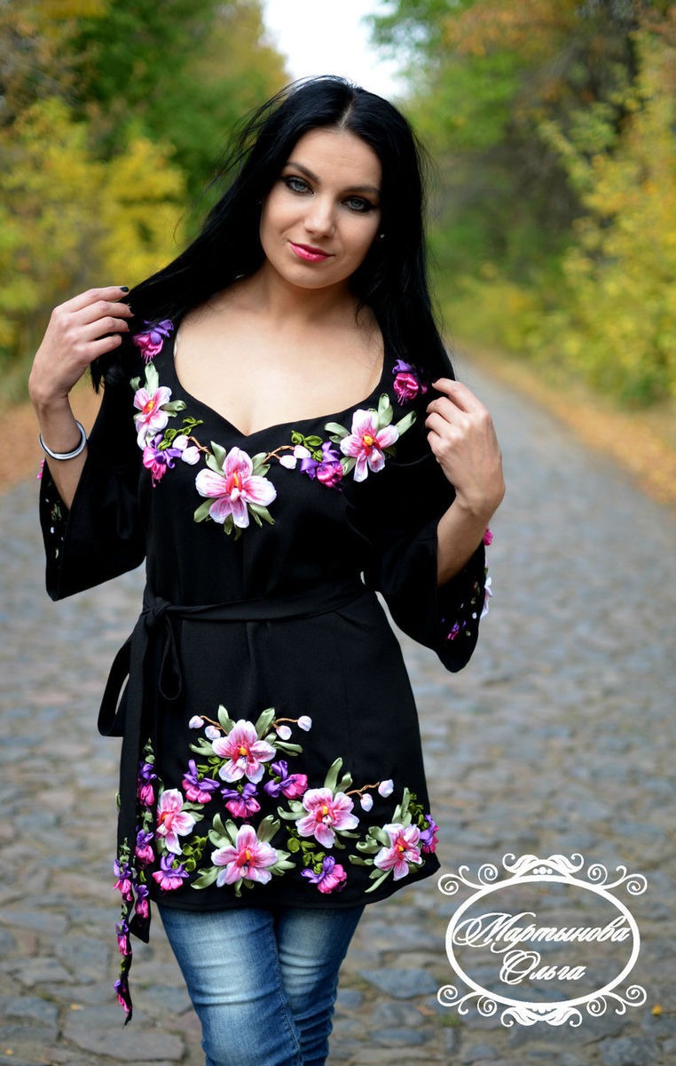 блуза из крепа украшена вышивкой лентами авторская работа . идеально подходит как нарядная одежда так и для повседневной носки .в таком платье вы будете чувствовать себя удобно и комфортно привлекая взгляды окружающи