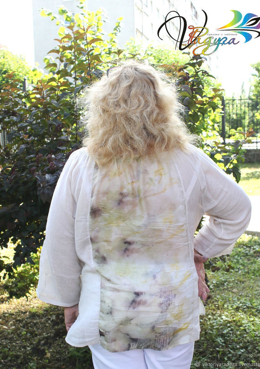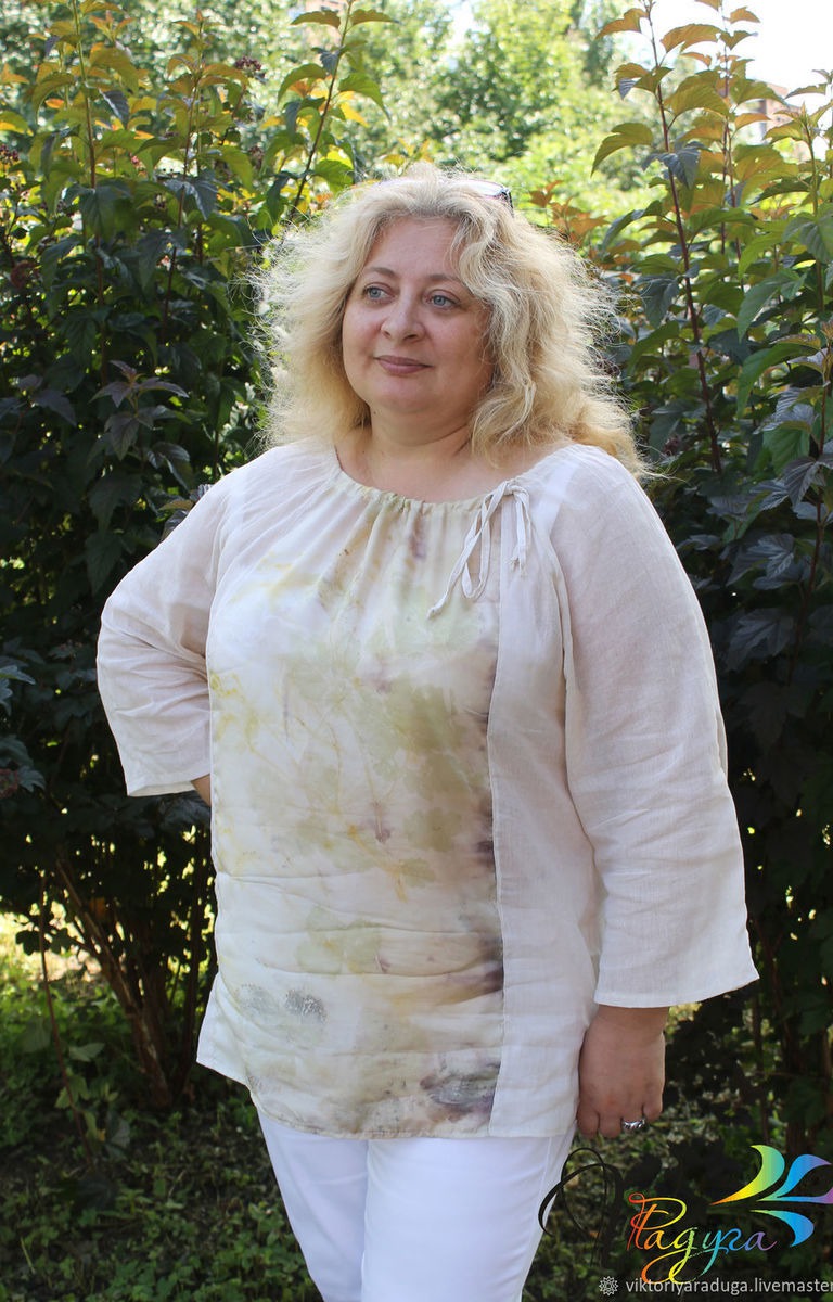 Блуза"Шепот летних трав" 2 выполнена в технике контактное крашение или эко-принт.