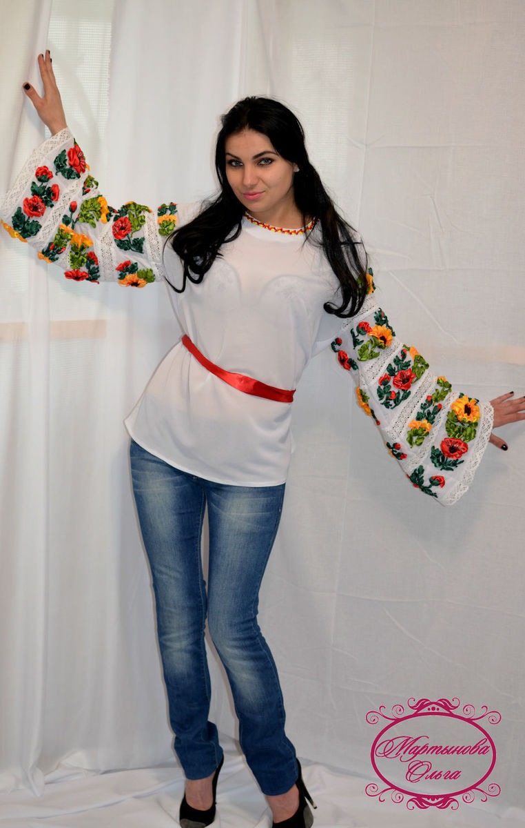 блуза из крепшифона украшена вышивкой лентами авторская работа . идеально подходит как нарярадная одежда так и для повседневной носки .в таком наряде вы будете чувствовать себя удобно и комфортно привлекая взгляды окружающих