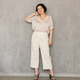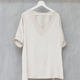 Свободная блузка с V-образным вырезом дополнит ваш базовый гардероб. Удлинённый вырез подчёркнут планкой, "вытягивающей" фигуру. Длинная блузка позволит создать много летних образов с брюками и юбками.