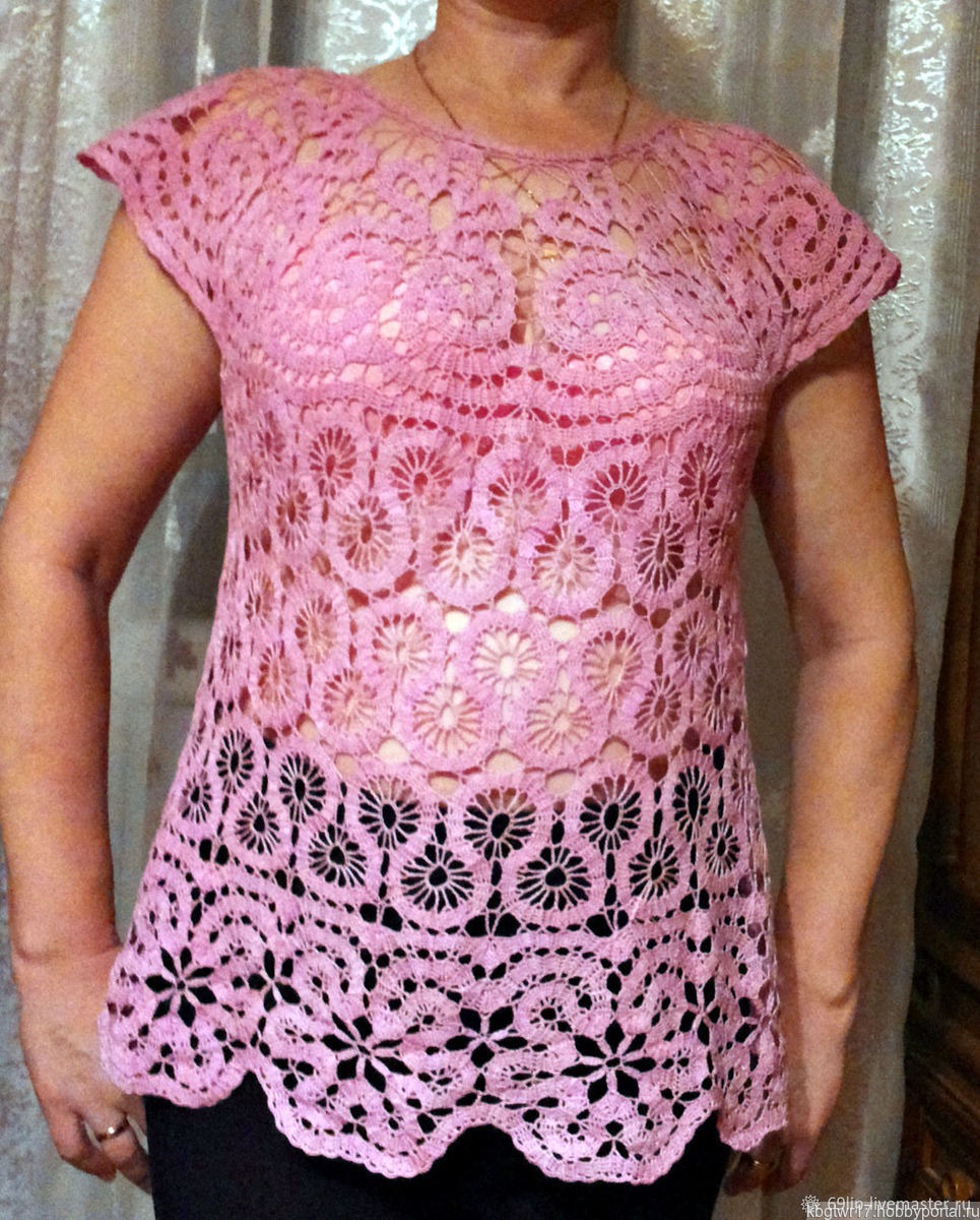 блузка, вязанная крючком 0,5 из тонкой турецкой нити "Канарис", 100% хлопок, узором брюгге.Замечательна для любого случая.