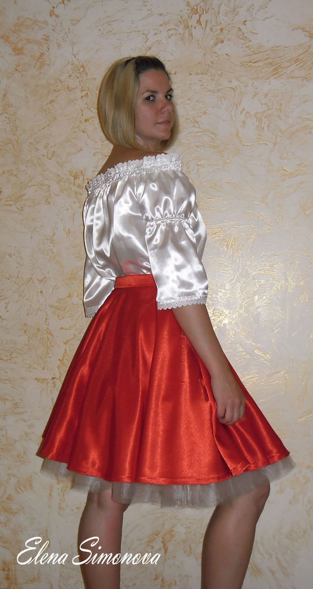 Данная блузка сшита по заказу руководителя театра к современному мюзиклу "Красная шапочка" к костюму Красной Шапочки.