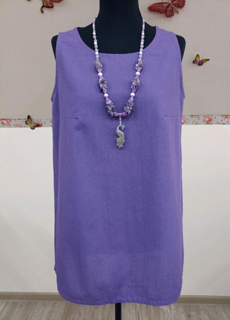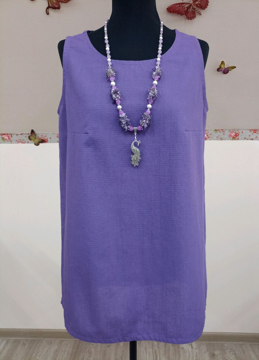 Льняной топ удлиненный, свободного кроя, удлиненный сзади, отлично будет смотреться с джинсами, легенсами, шортами. Образ можно дополнить бусами, которые можете приобрести отдельно в нашем магазине.