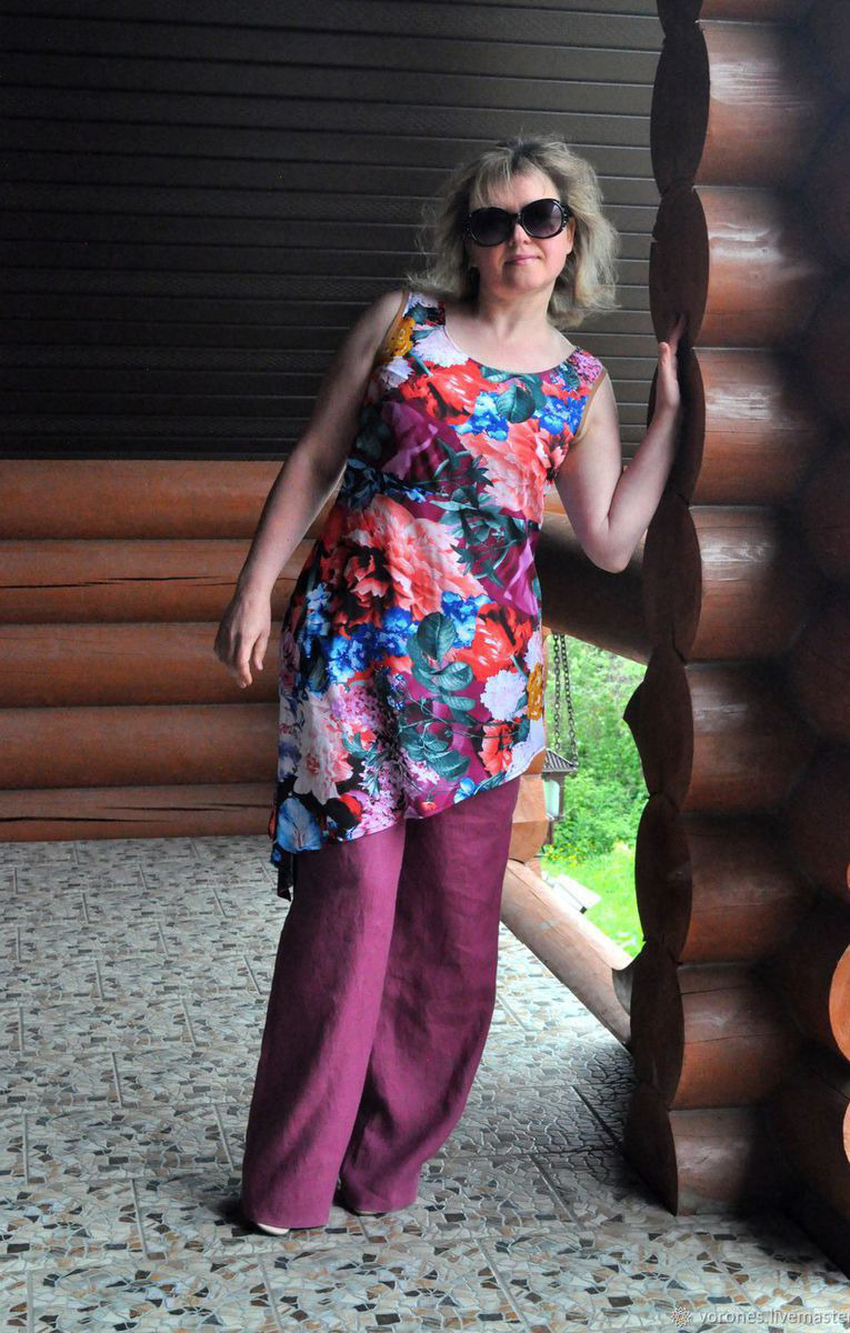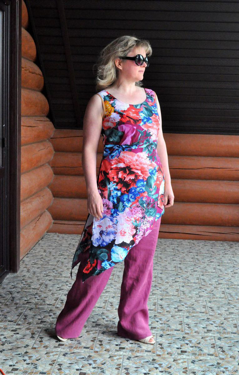 Туника имеет длинные остроугольные полы и разрезы, которые красиво развеваются на ветру. Модель туники зрительно вытягивает рост.