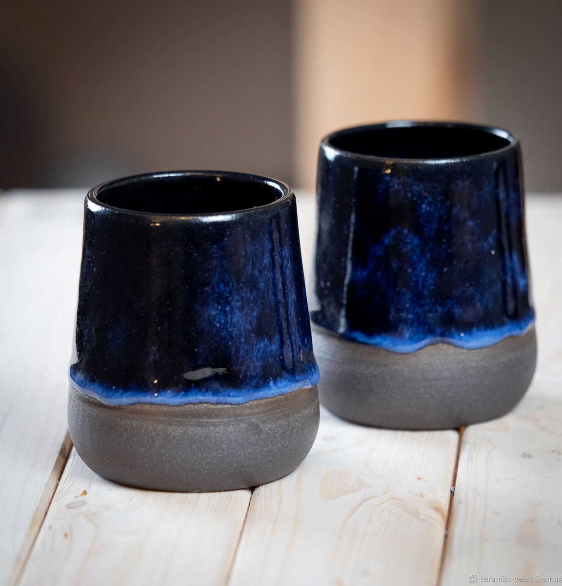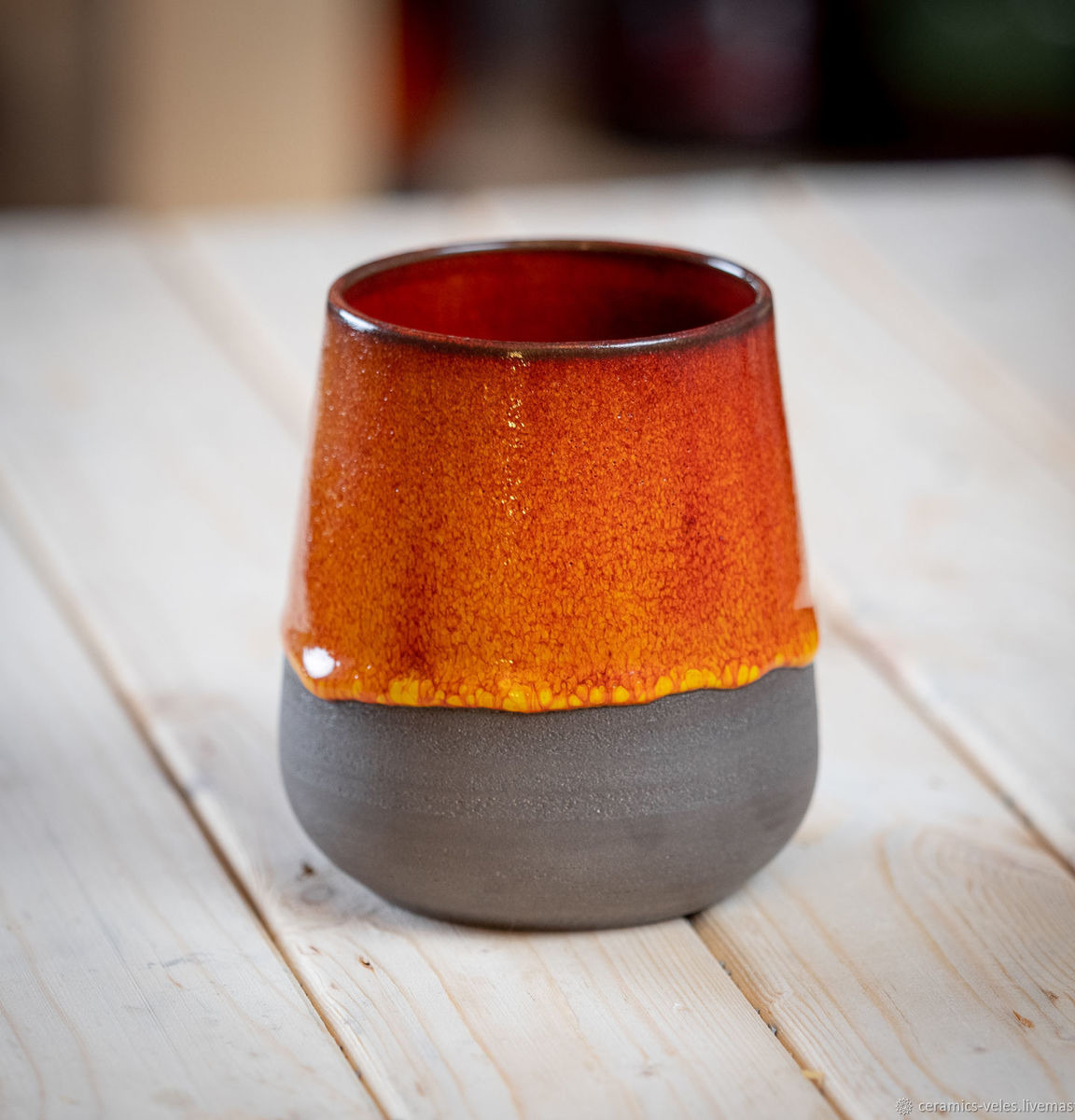 оранжевый, синий, подарок, керамика, черный, лиса, керамика ручной работы, посуда для кухни, посуда ручной работы, посуда из глины, керамическая кружка, керамическая посуда, посуда из керамики, стакан, Посуда на заказ, керамика ручная, стакан из глины, стаканчик, стакан керамический