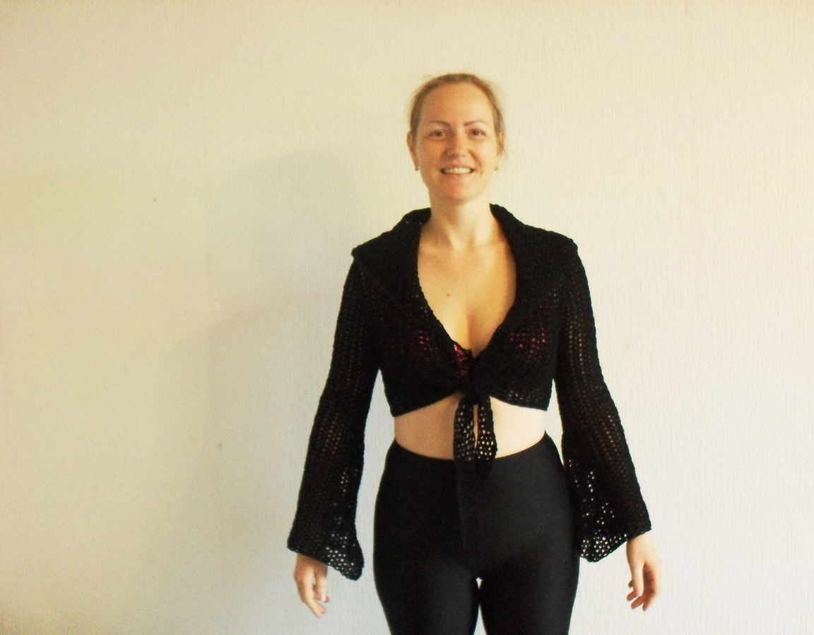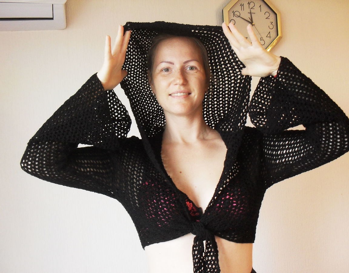 болеро, летнее, с завязками, вязанное крючком, ажурное, с длинным рукавом