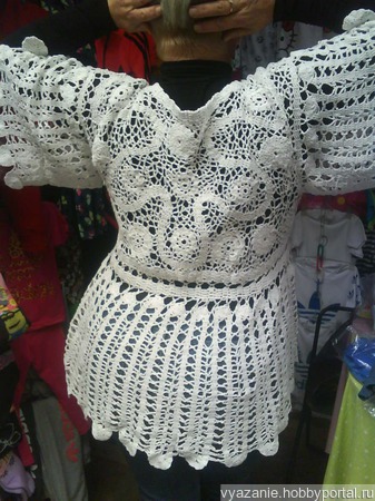ажурная нежная кофточка создает ощущение невесомости , полета нежности и скрывает недостатки фигуры. расширена от груди, рукава "крылышки"связана в технике бюргерское кружево, из хлопка 100%