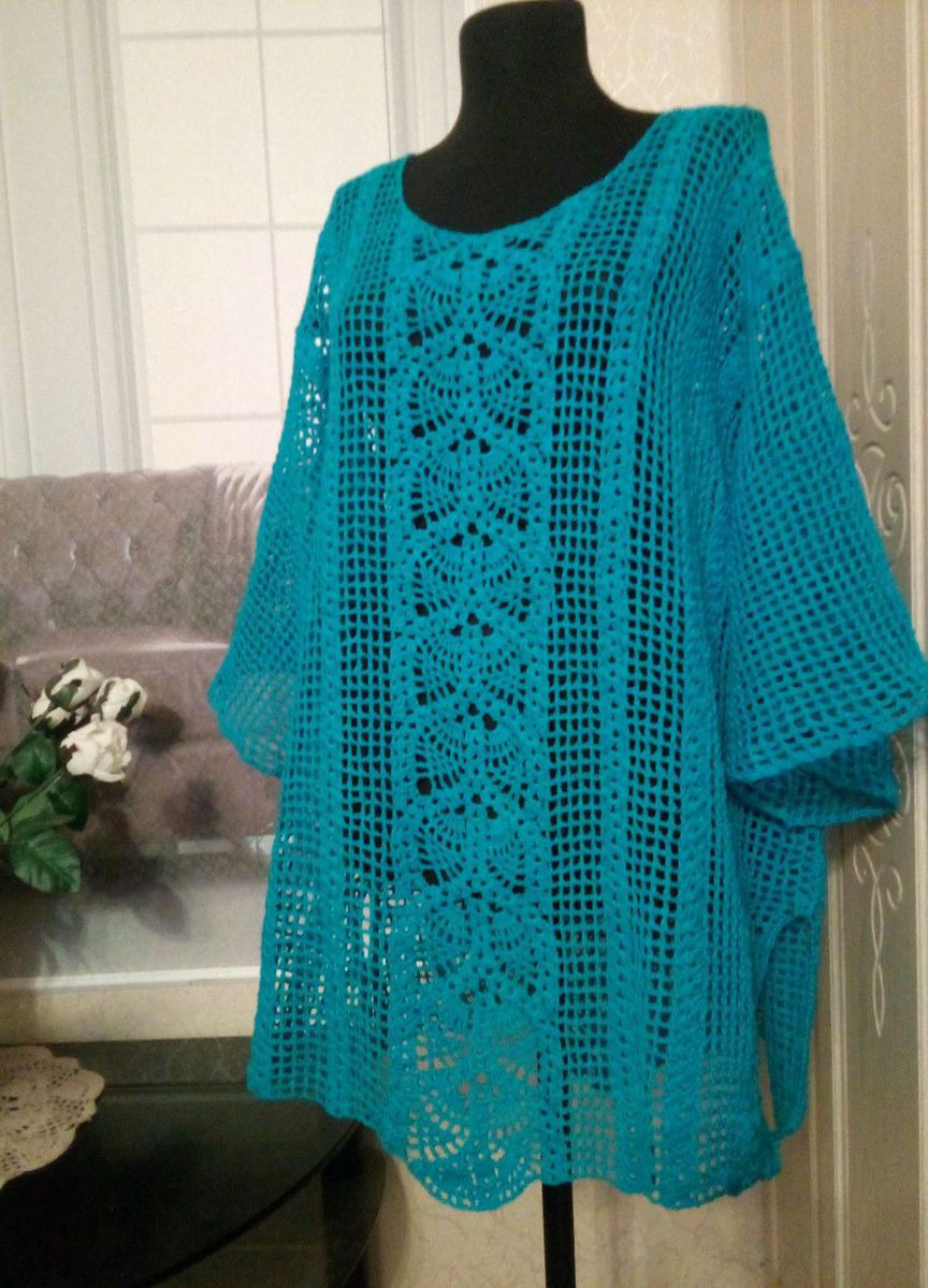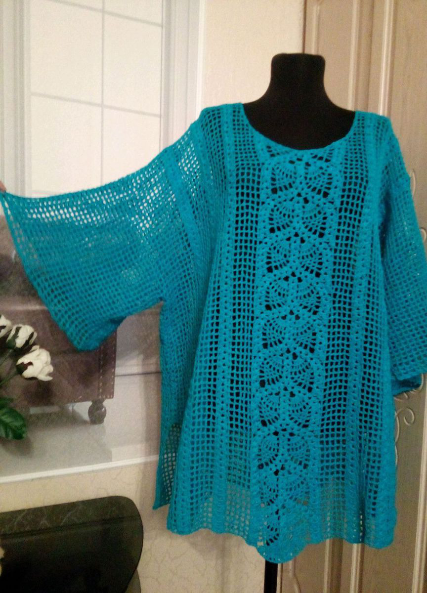 туника вязаная, оверсайз, туника крючком, туника ажурная, туника из хлопка, туника большого размера, туника в стиле бохо