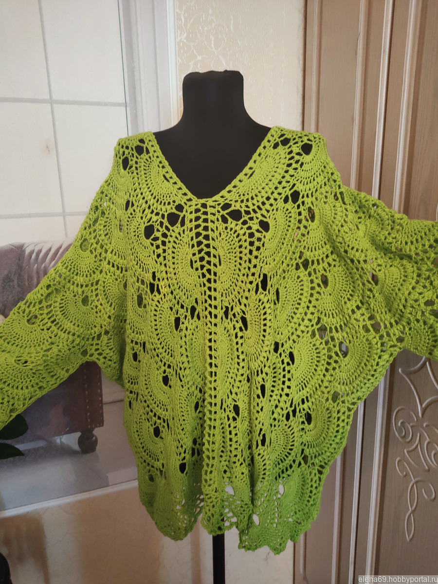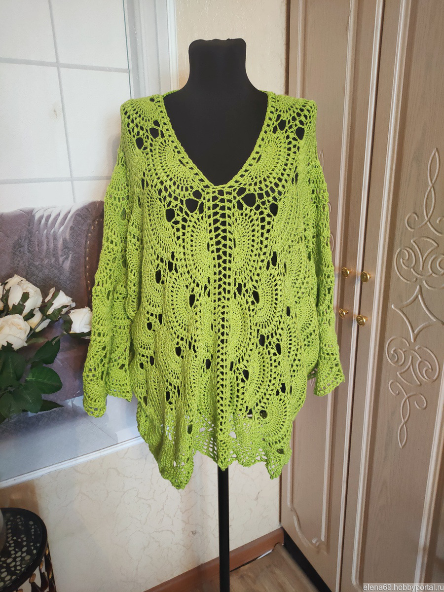 Туника большого размера 54-60, связанная крючком. Возможно повторить в любом цвете и размере. Данная туника в полуобхвате 68см, длина 70см. Рукав свободный 3/4