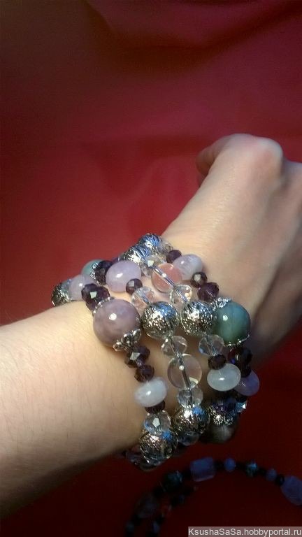 стеклянные бусины, яшма натуральная, аметист натуральный