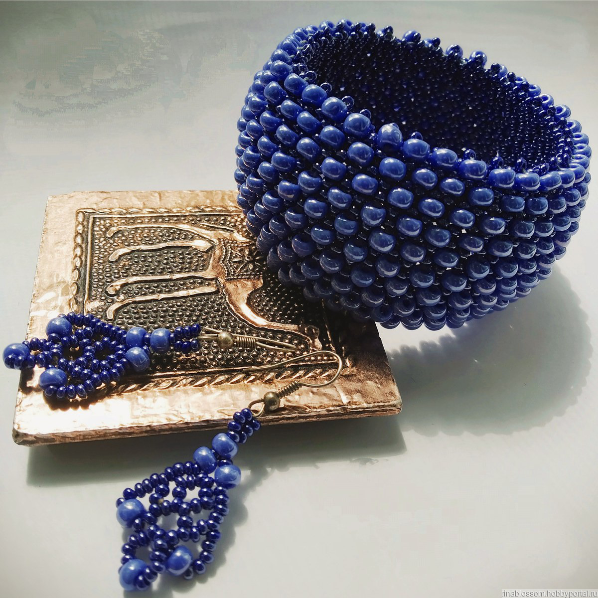 Браслет сине-сиреневый, сплетен из чешского бисера. К нему небольшие сережки, швензы металл.