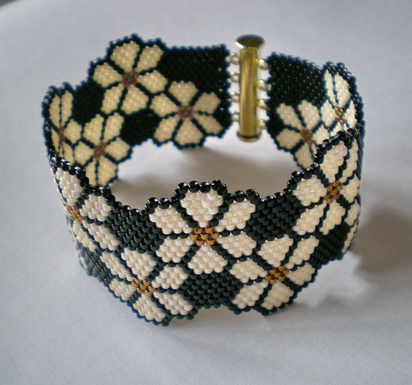 браслет, браслет из бисера, цветы, браслет ручной работы