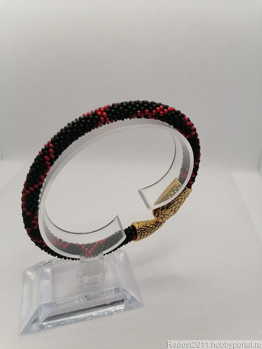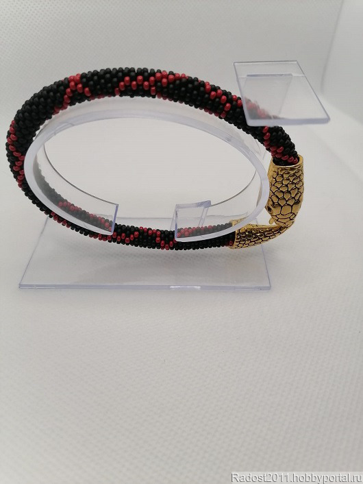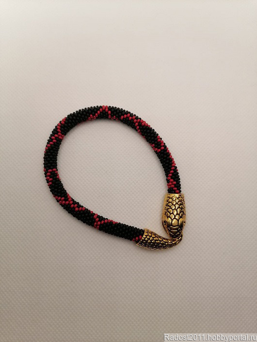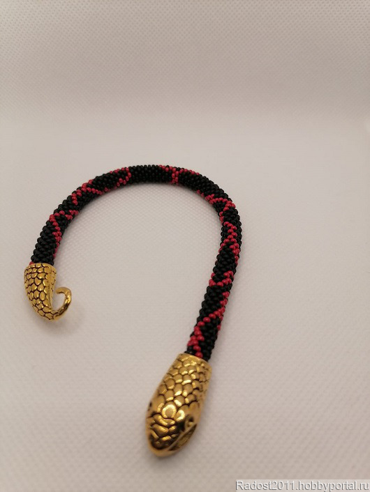 Браслет-жгут из чешского бисера.Фурнитура голова Голова и хвост змейки, металл, цвет - золото. Отличный подарок.