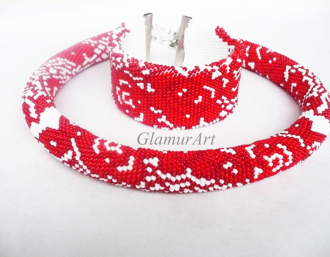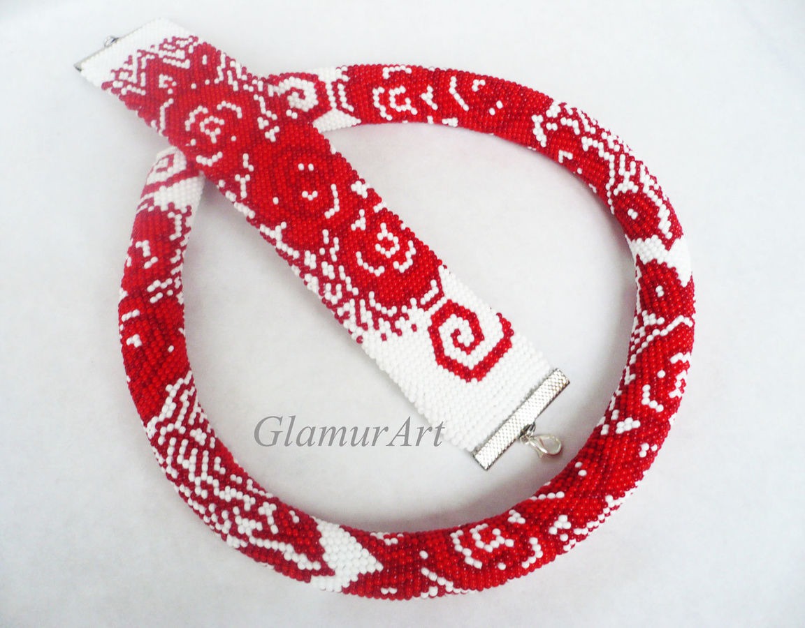 белый, красный, лето, браслет из бисера, розы, подарок, украшения ручной работы, браслет на руку, жгут вязанный из бисера, браслет в подарок, жгут бисерный, жгут из бисера купить, бело-красный, украшения на руку