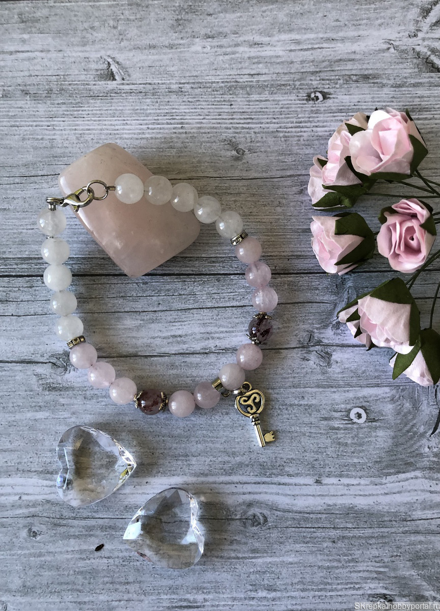 авторская работа, браслет из камней, кварц розовый, браслет из кварца, браслет в подарок купить