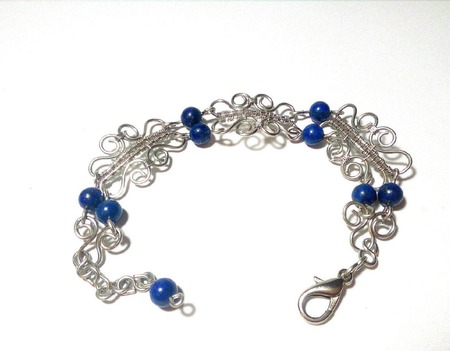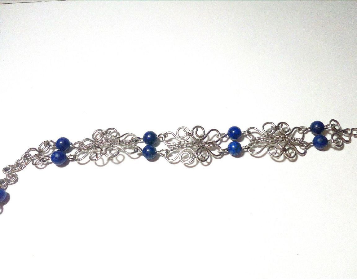 Браслет сделан из медной проволоки с прочным посеребрением и бусин лазурита 6мм.