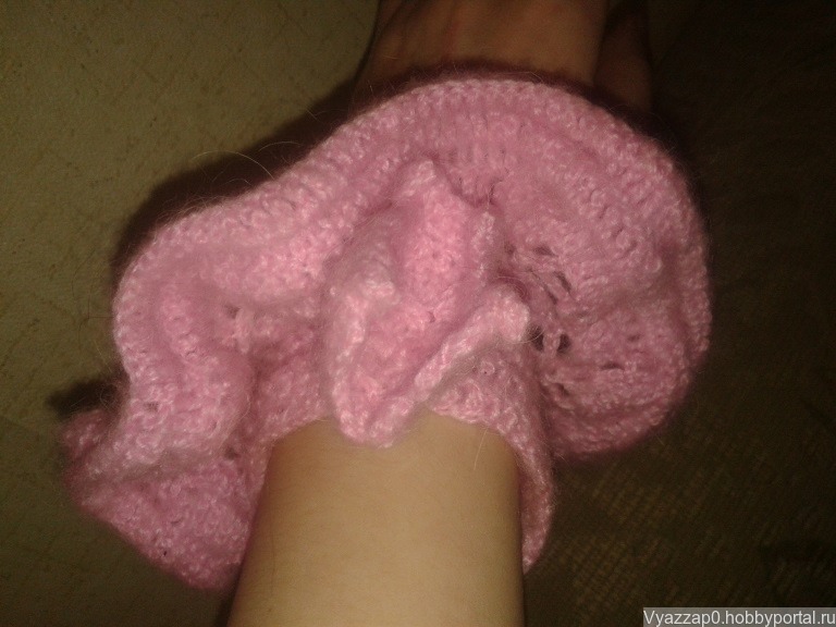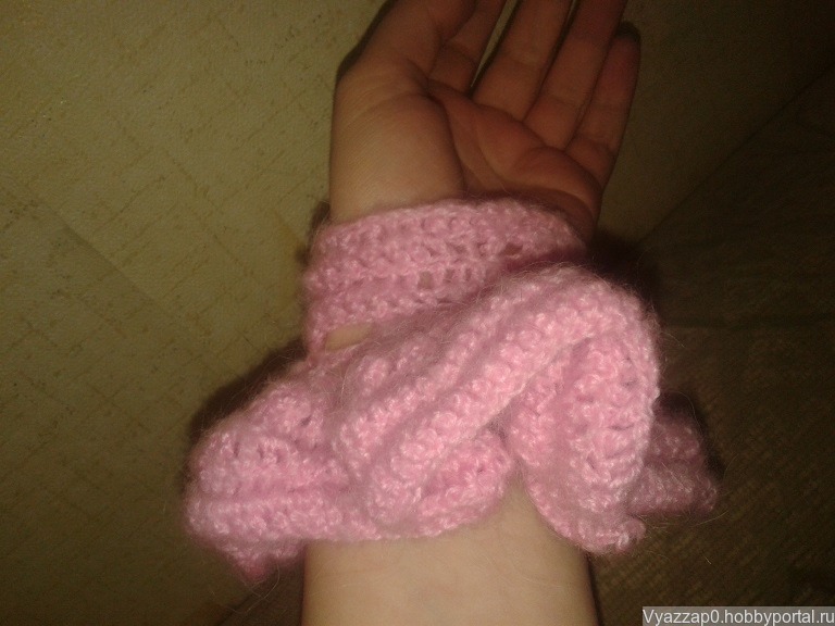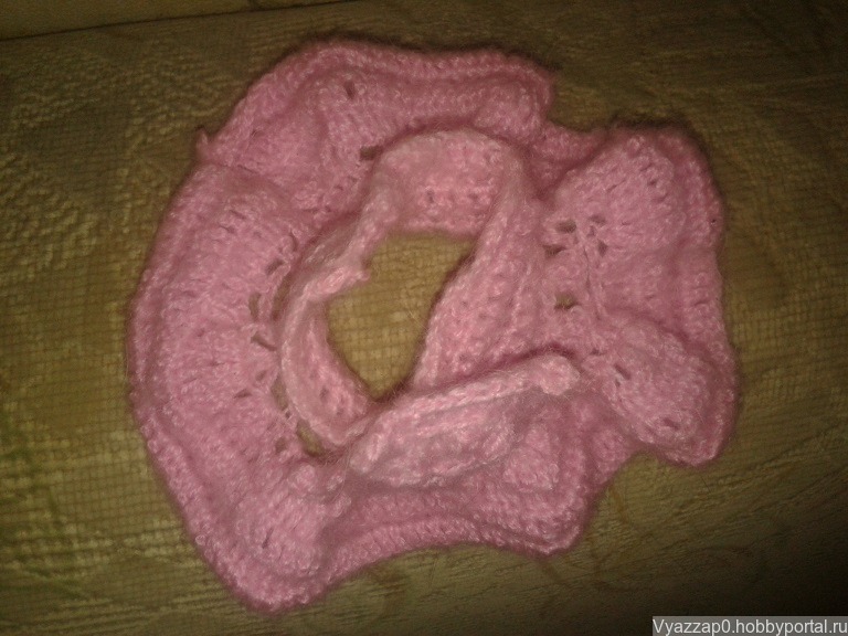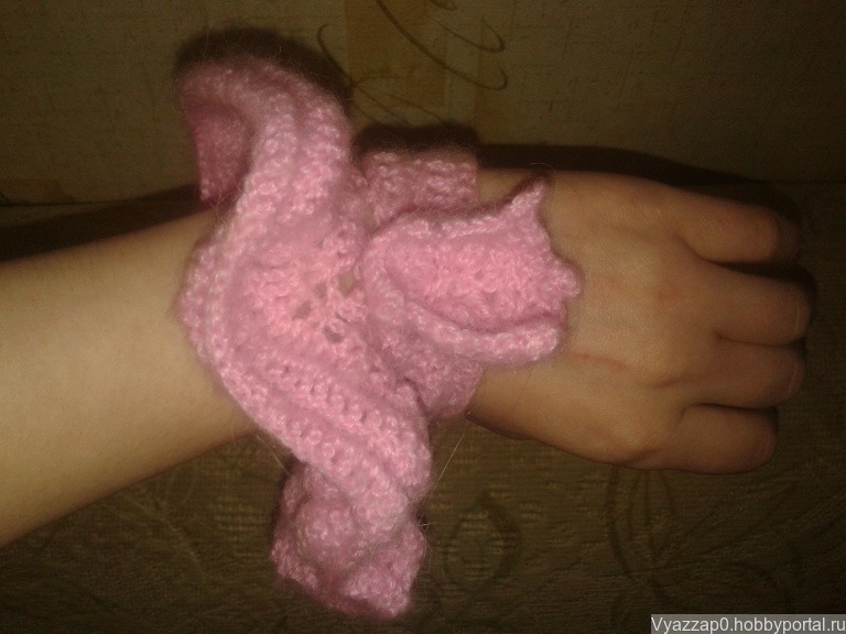Браслет-волан. Ажур. С цветком магнолии. Выполнен спицами.