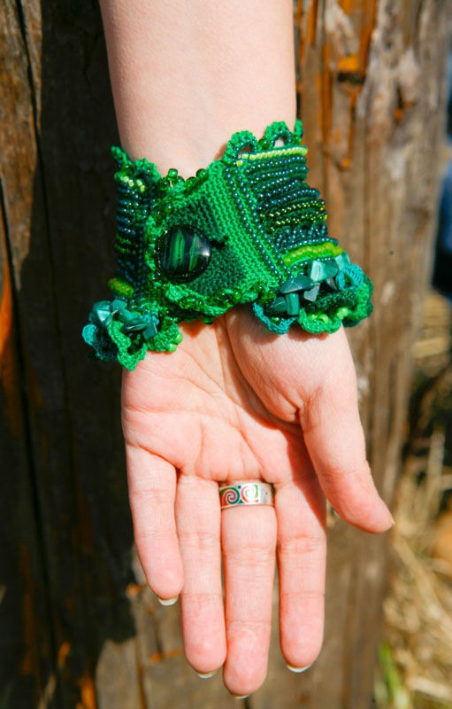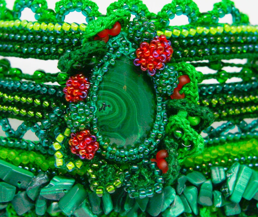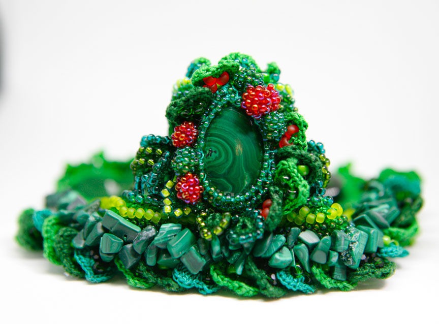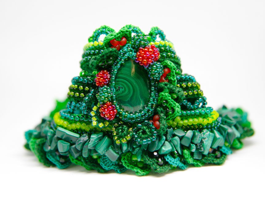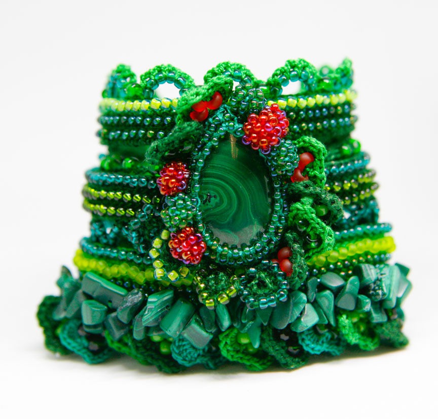 браслет из бисера, вязаный браслет, зеленый браслет, женственный браслет, браслет крючком, бохо браслет, catterins, catterinsart, браслет с малахитом, малахитовый браслет, с натуральным камнем, с малахитом, элегантный браслет, из бисера