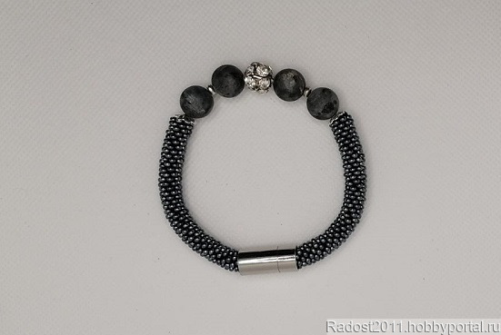 Браслет из бусин черного матового лабрадорита и бисерного жгута. Застежка магнитная (очень сильный магнит).