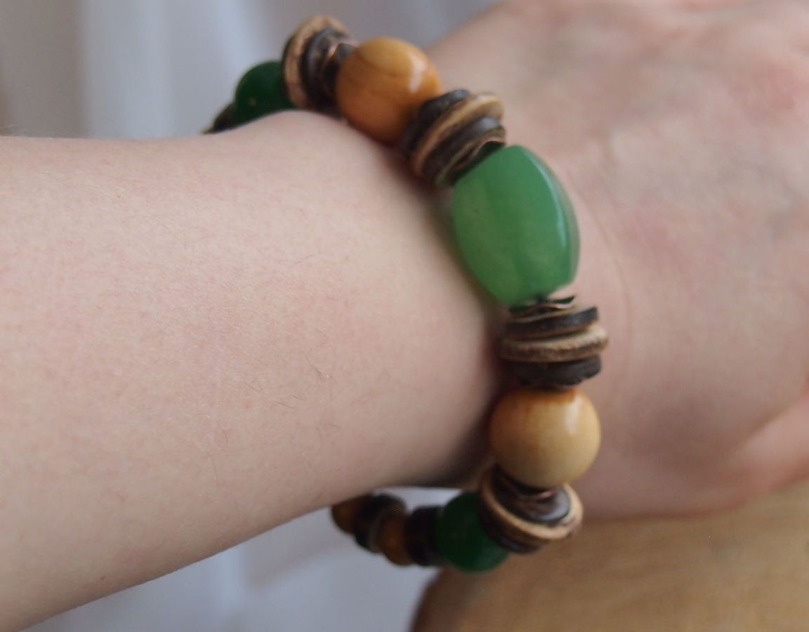 браслет, бохо-стиль, нефрит, браслет ручной работы, комбинированный, бохо, необычное украшение, кокос, необычный браслет, первобытный