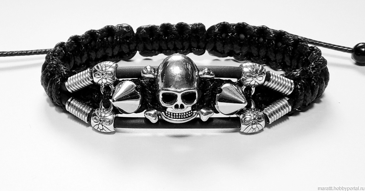 ручная работа, браслет, череп, плетение, стимпанк, шамбала, брутальный, байкеровский
