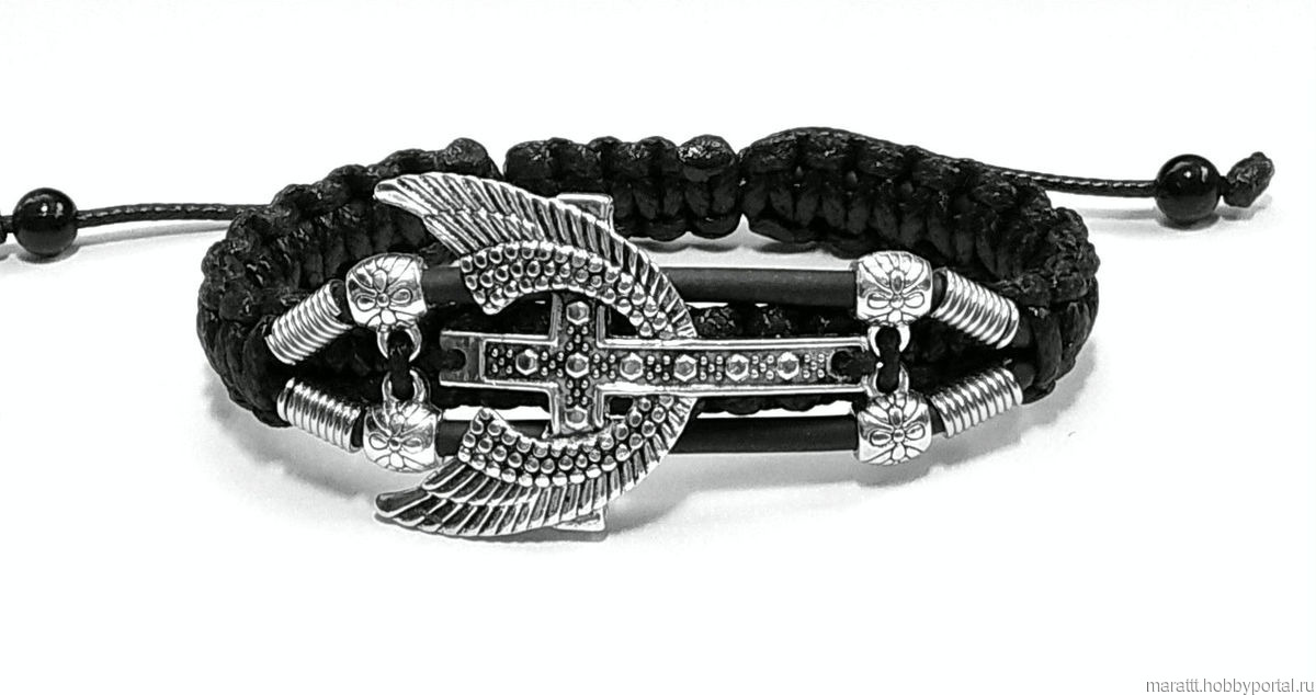 ручная работа, браслет, череп, крест, плетение, стимпанк, шамбала, брутальный, пентаграмма, байкеровский