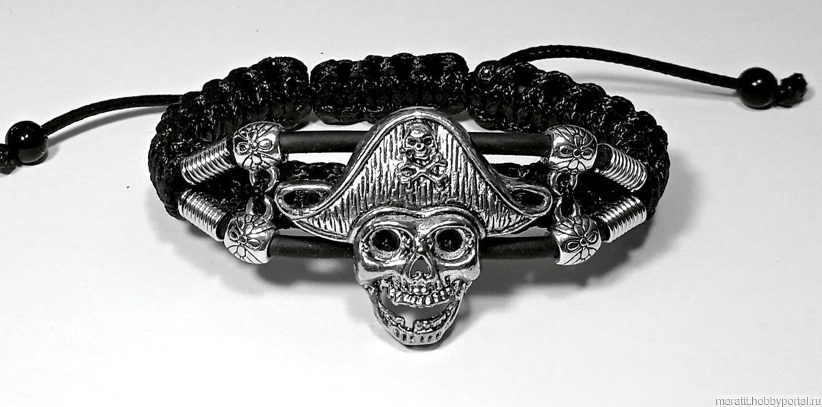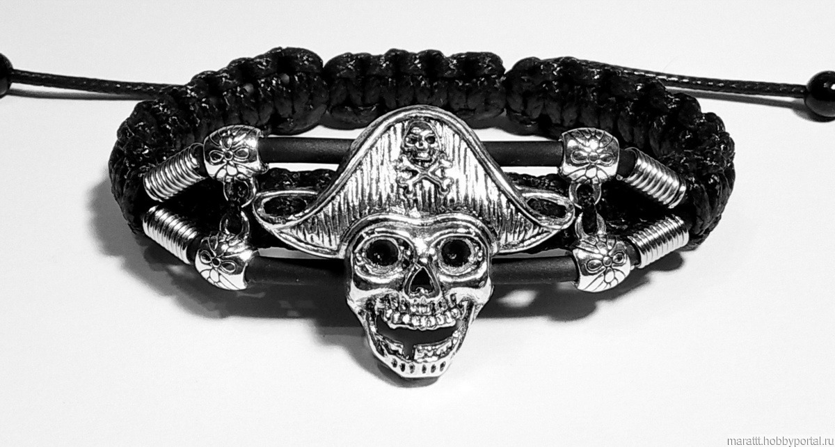 ручная работа, браслет, череп, пират, плетение, стимпанк, шамбала, брутальный, байкеровский