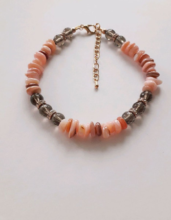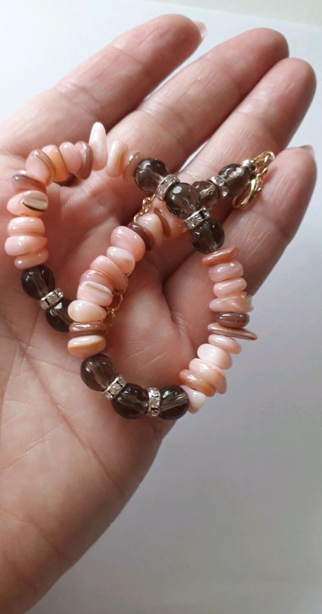 украшение ручной работы, украшение на руку, натуральный камень, натуральный кварц, дымчатый кварц, натуральный перламутр, браслет с дымчатым кварцем