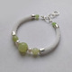 Оформлен фурнитурой под серебро. Браслет держит форму благодаря проволоке с памятью. Застегивается при помощи карабина и цепочки.