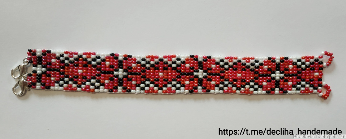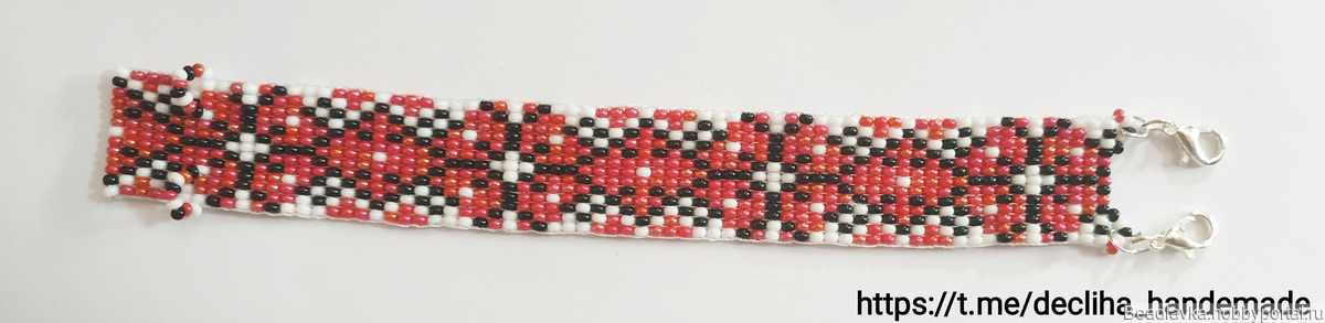 На данных фото браслеты с рисунком, делались по предзаказу разным людям. На одном белый перламутровый бисер , на другом матовый.