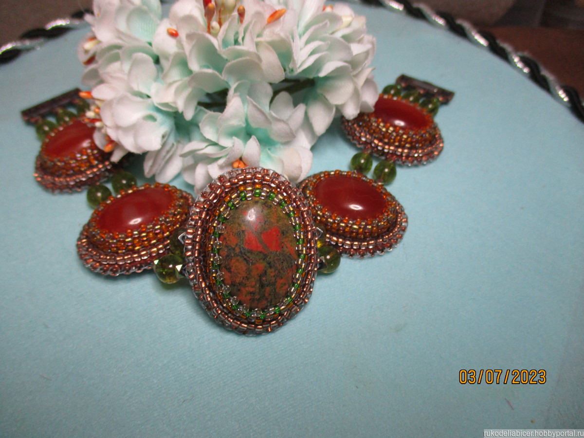 агаты, японский бисер ТОНО, фетр, магнитная застежка, гематитовые бусины, клей момент, перидот, унакит, бисер чешский, кожа, нитки