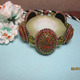 Браслет "Сафари" состоит из пяти кабашонов: камень унакит и четыре агата, оплетеных японским и чешским бисером. Кабашоны соединены проставочными гематитовыми и бусинами 6 мм перидот. Замок магнитный , цвет меди. Длина браслета 18 см.