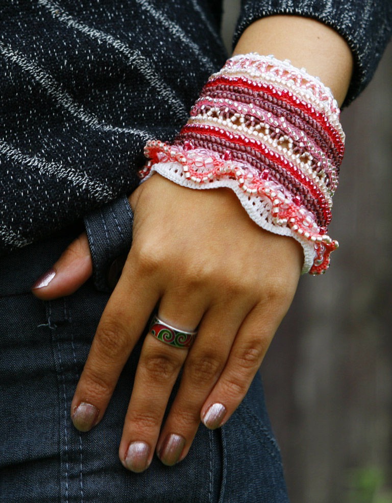 браслет из бисера, авторские украшения, браслет ручной работы, авторская бижутерия, каффы, браслет крючком, бохо браслет, изящный браслет, розовый браслет, стильный браслет, манжета, манжета крючком