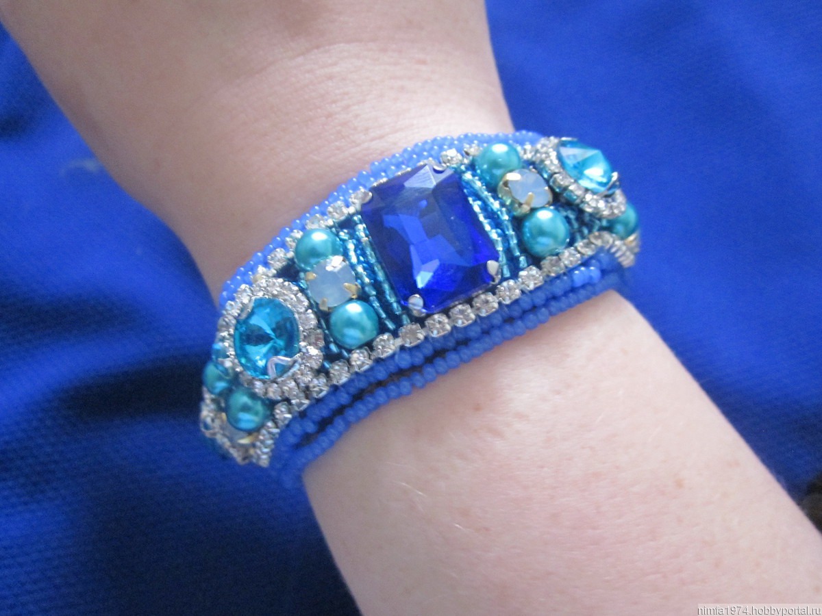 украшение, ручная работа, синий, браслет, браслет из бисера, нарядный, браслет ручной работы, браслет на руку, украшение из бисера, браслет вышитый бисером, браслет в подарок купить, браслет из бисера и страз