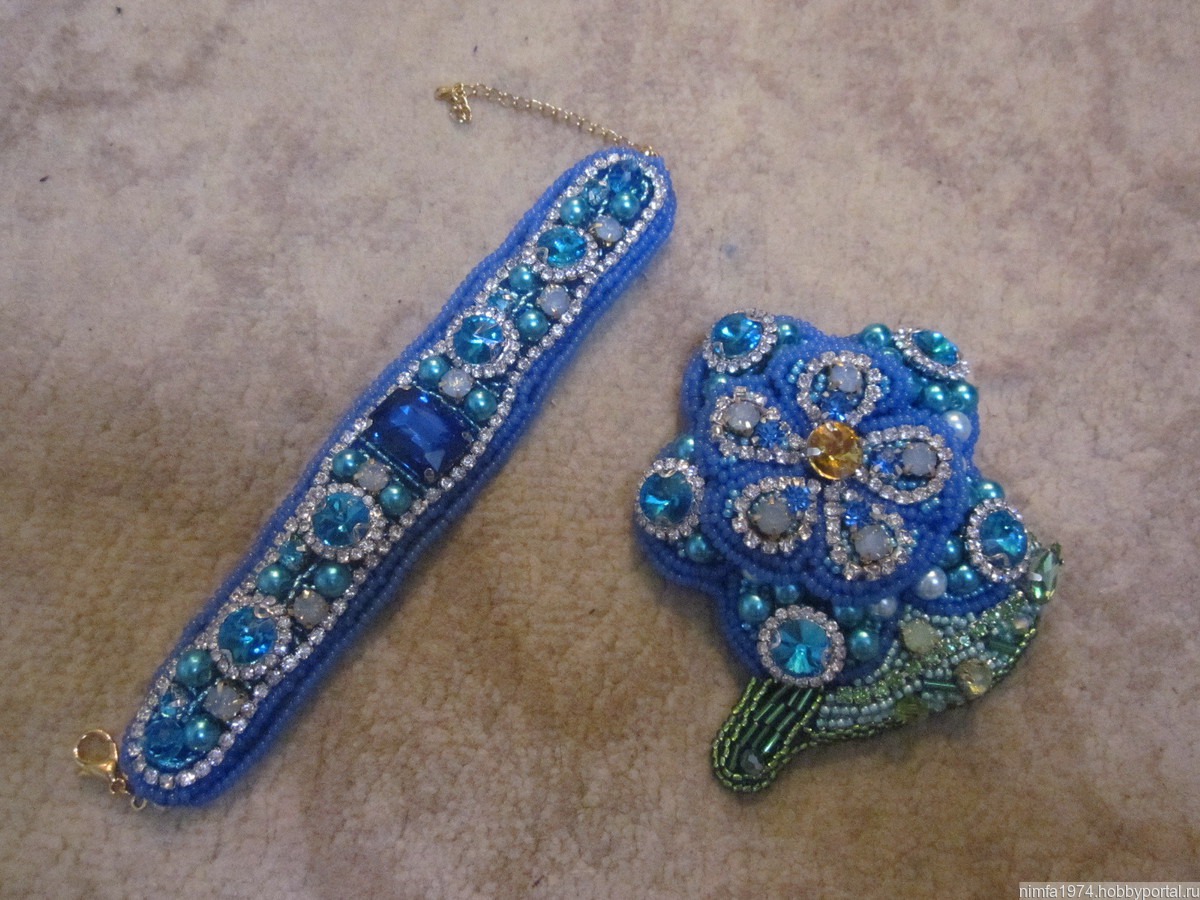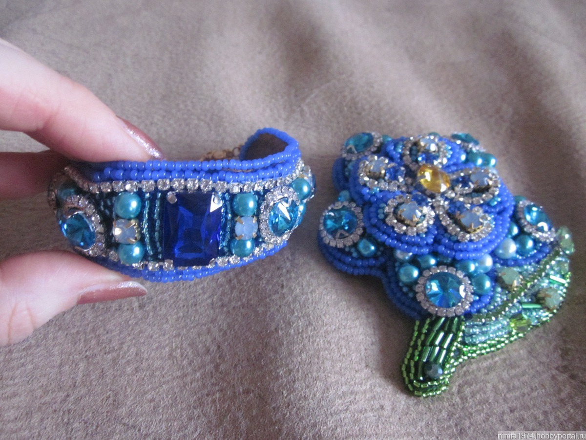 Яркий, красочный браслет Сапфировый" ручной работы вышитый чешским бисером, хрустальными стразами, чешскими бусинами, стразовой цепочкой прекрасно украсит Ваш наряд или станет отличным подарком. Браслет очень красиво переливается. Длина, размер браслета регулируется цепочкой, застежка карабин. В комплект к браслету имеется брошь "Сапфировый цветок". Комплект продается с 10% скидкой. Высылается в подарочном пакете из органзы. Изнанка экокожа.