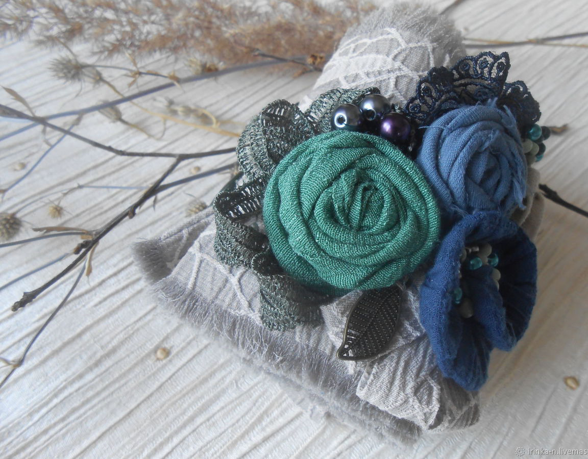 Браслет декорирован различным кружевом , бусинами и бисером .