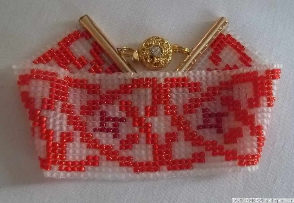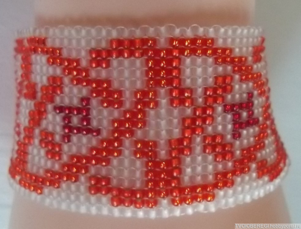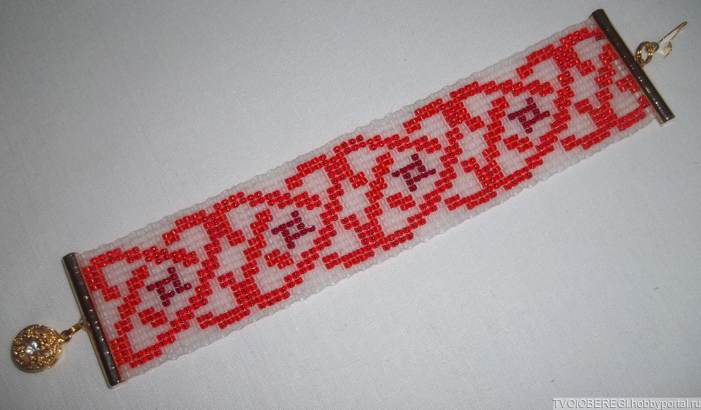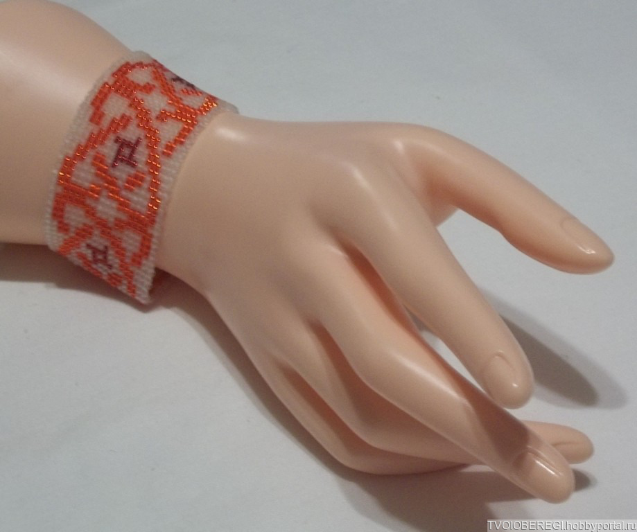 Браслет создан в технике бисерное полотно.