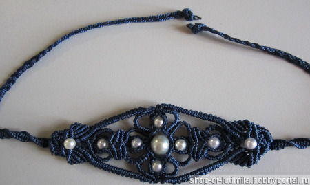 Браслет в технике макраме из вощеной нити с бусинками. Завязывается на запястье.