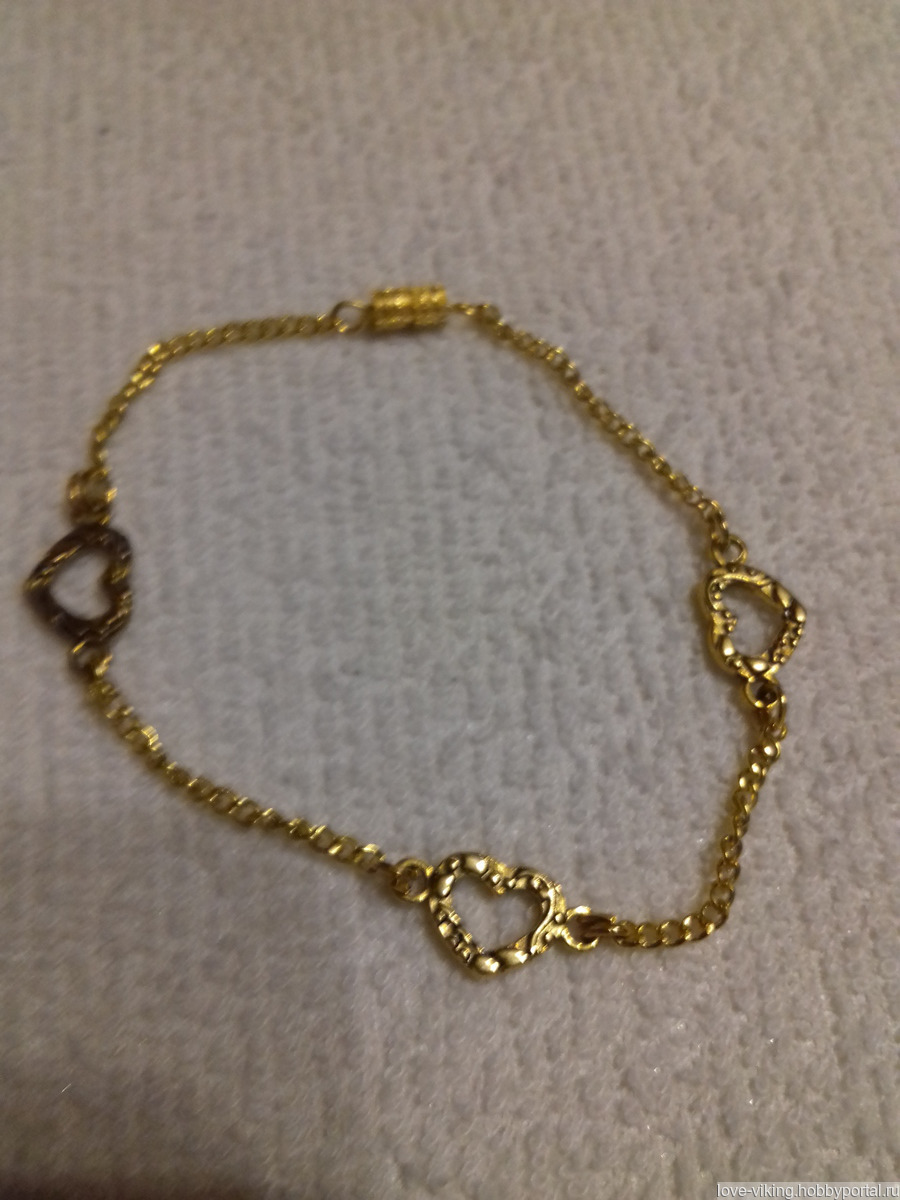 Браслет из тонкой цепочки с коннекторами в виде сердец